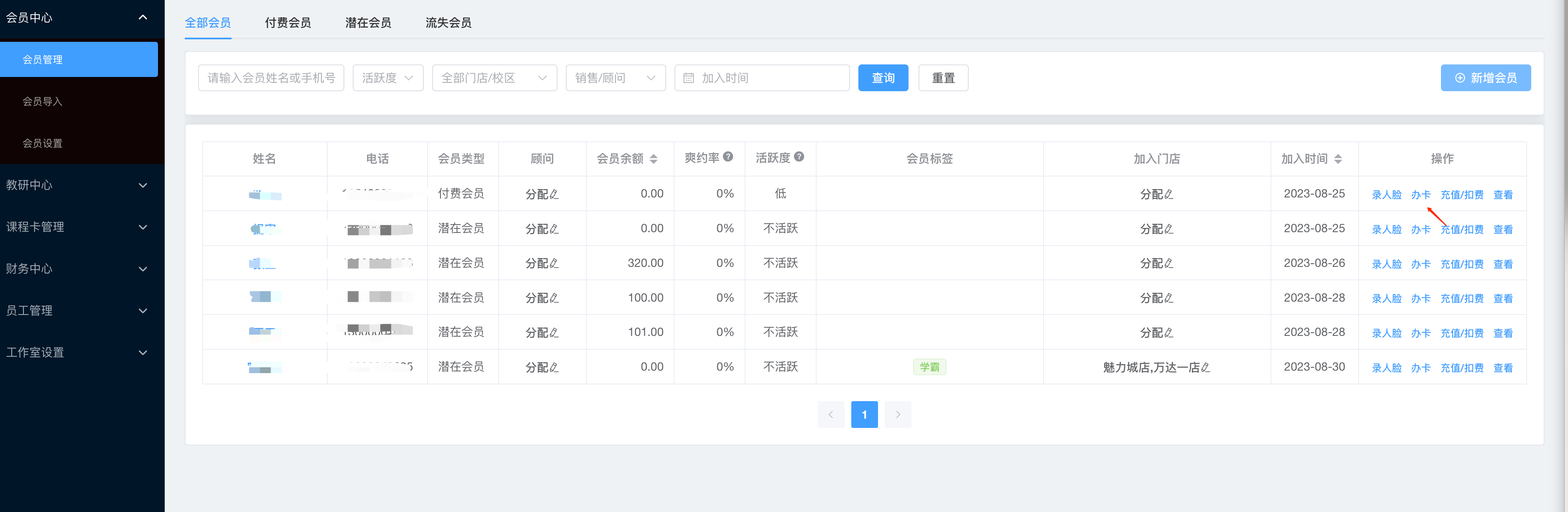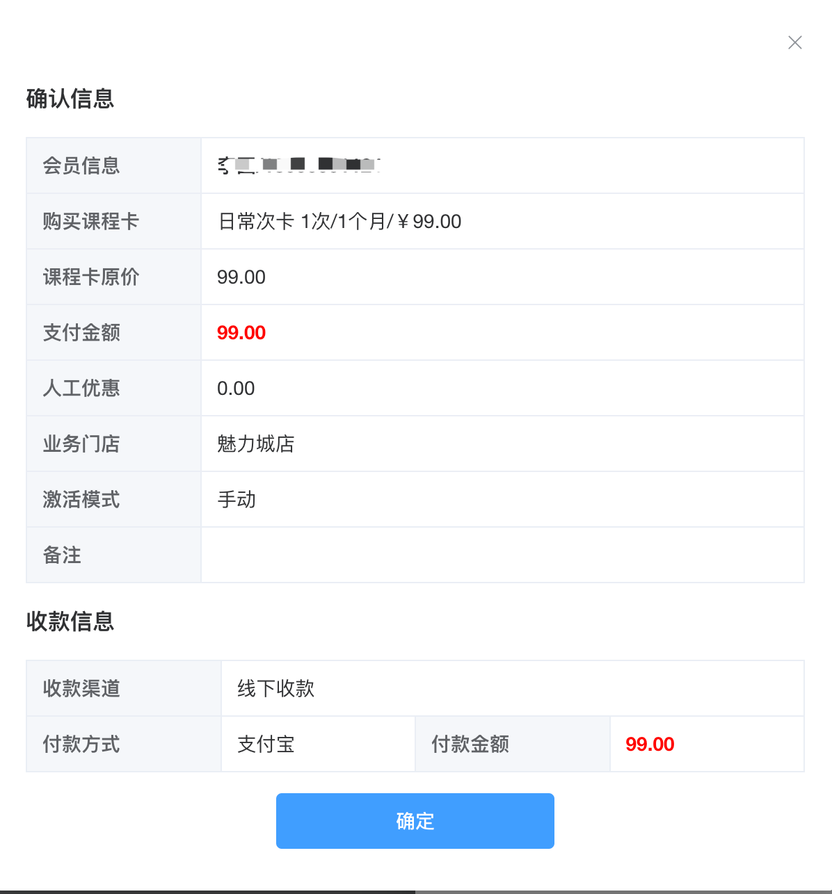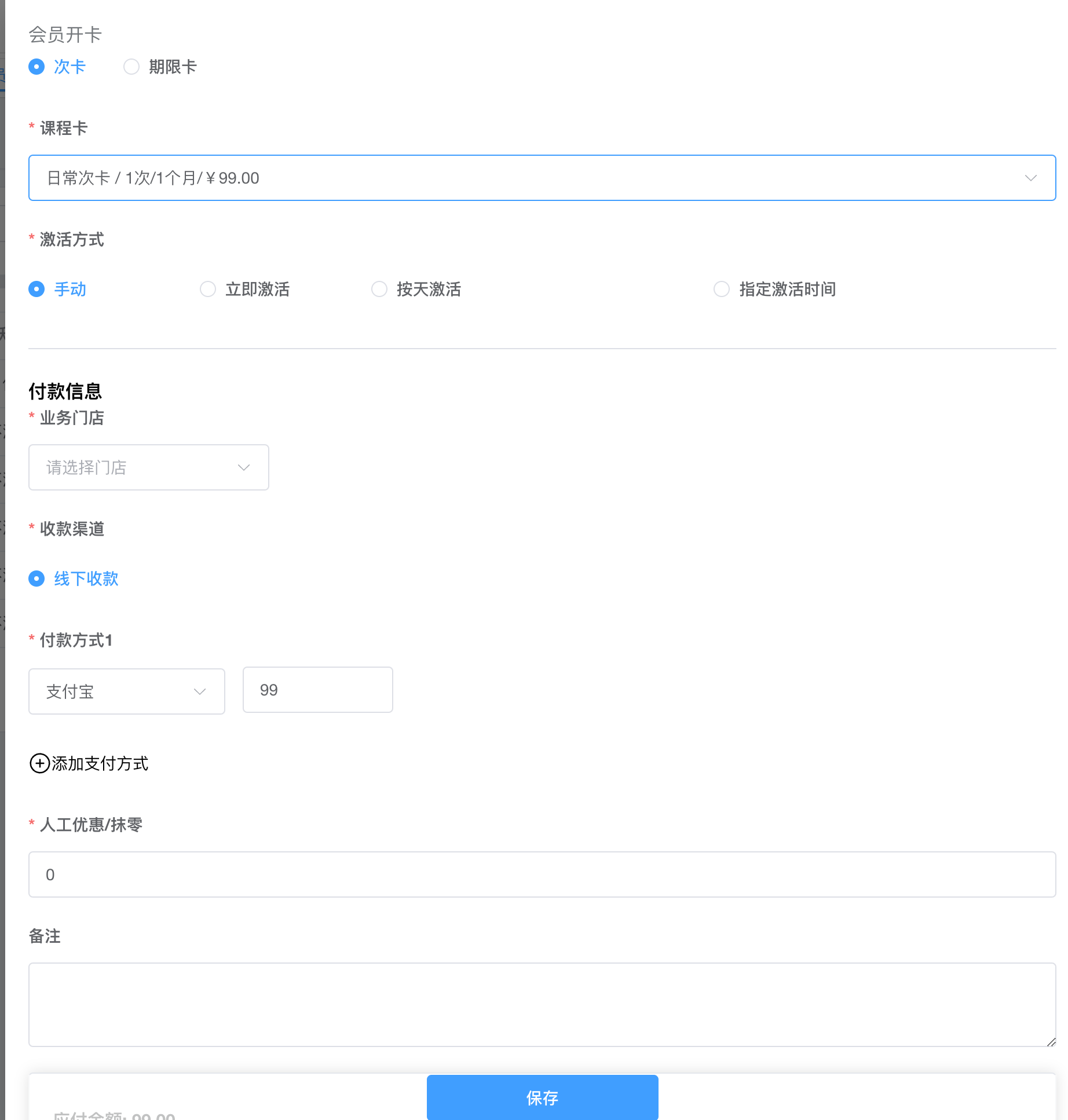 办理课程卡(会员开卡)